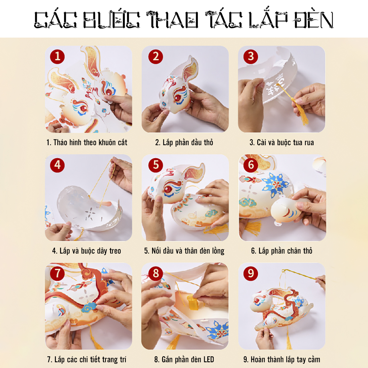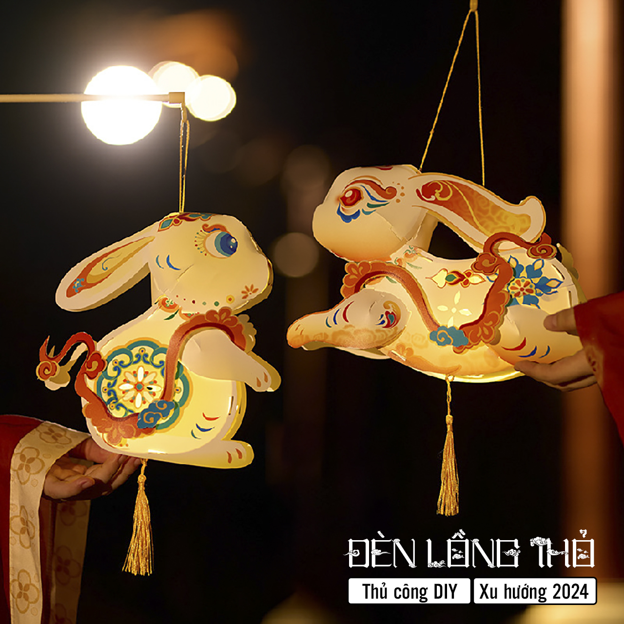 Đèn Lồng Trung Thu Con Thỏ Cầm Tay Tự Làm DIY, Lồng Đèn Trang Trí Lễ Hội, Quà Tặng Handmade Mới 2024