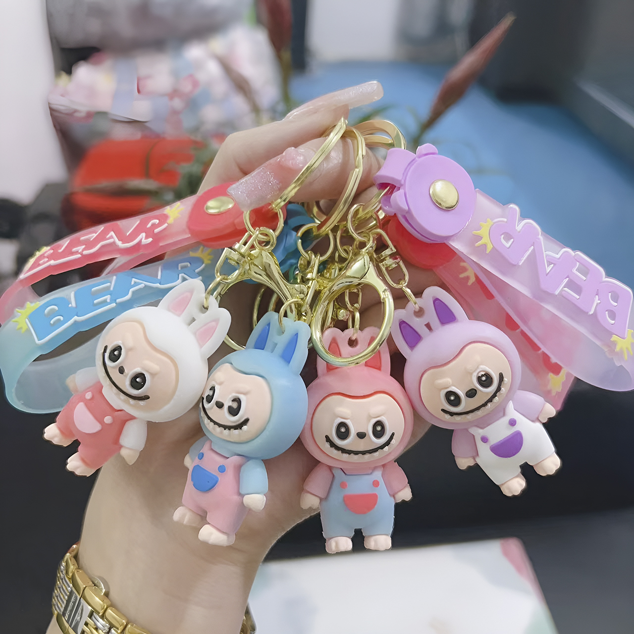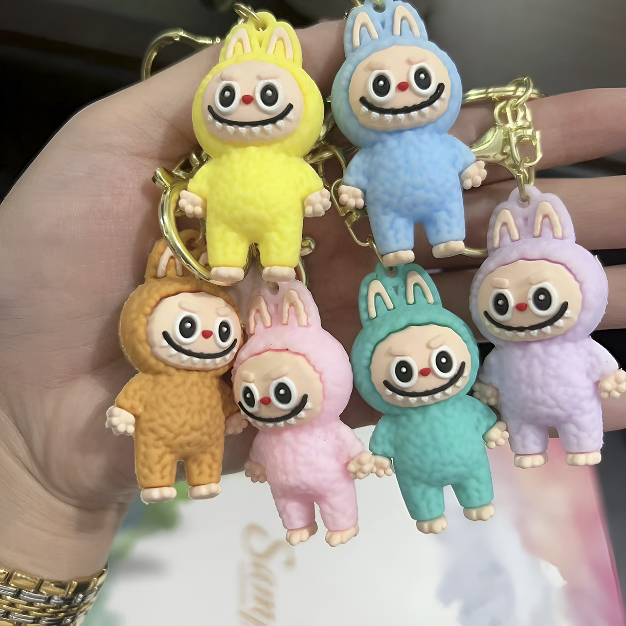 Móc Khóa Đồ Chơi Hoạt Hình Labubu Macaron Siêu Dễ Thương Kèm Tag Theo Màu, Phụ Kiện Balo Túi Xách